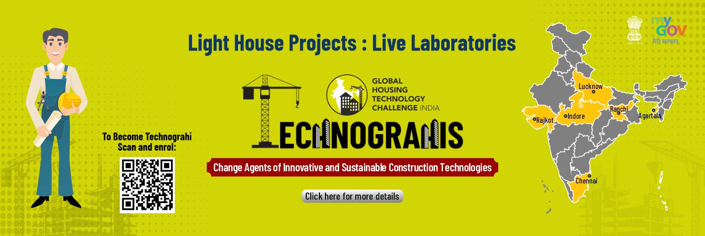 The primary goal of making these LHPs as Live Laboratories is to encourage large scale citizen participation and create technical awareness for on-site learning, multi stakeholders consultation, find ideas for solutions, learning by doing, experimentation and encouraging innovation, thereby mainstreaming the globally identified proven innovative technologies under GHTC-India in Indian context. MoHUA has initiated an Online Enrolment Drive for all stakeholders to register themselves to visit these pilot projects, learn the use of latest innovative technologies, innovate and adapt as per their local needs and contexts as Technograhis of new construction technologies to be adopted as ‘Make in India’. Read More