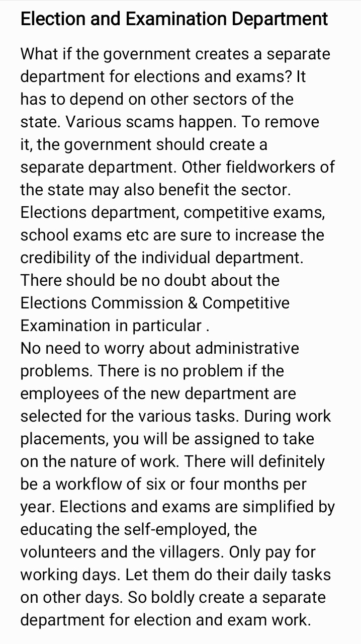 More reforms and changes are needed in departments like agriculture, employment, medicine and the judiciary. The welfare of the people and the development of the nation are all important. Many of my previous requests have been accepted. My other requests are in the following images. Among these, the central government should implement what is desirable and feasible. If you have any questions about the implementation please contact me. I am ready to explain in detail.