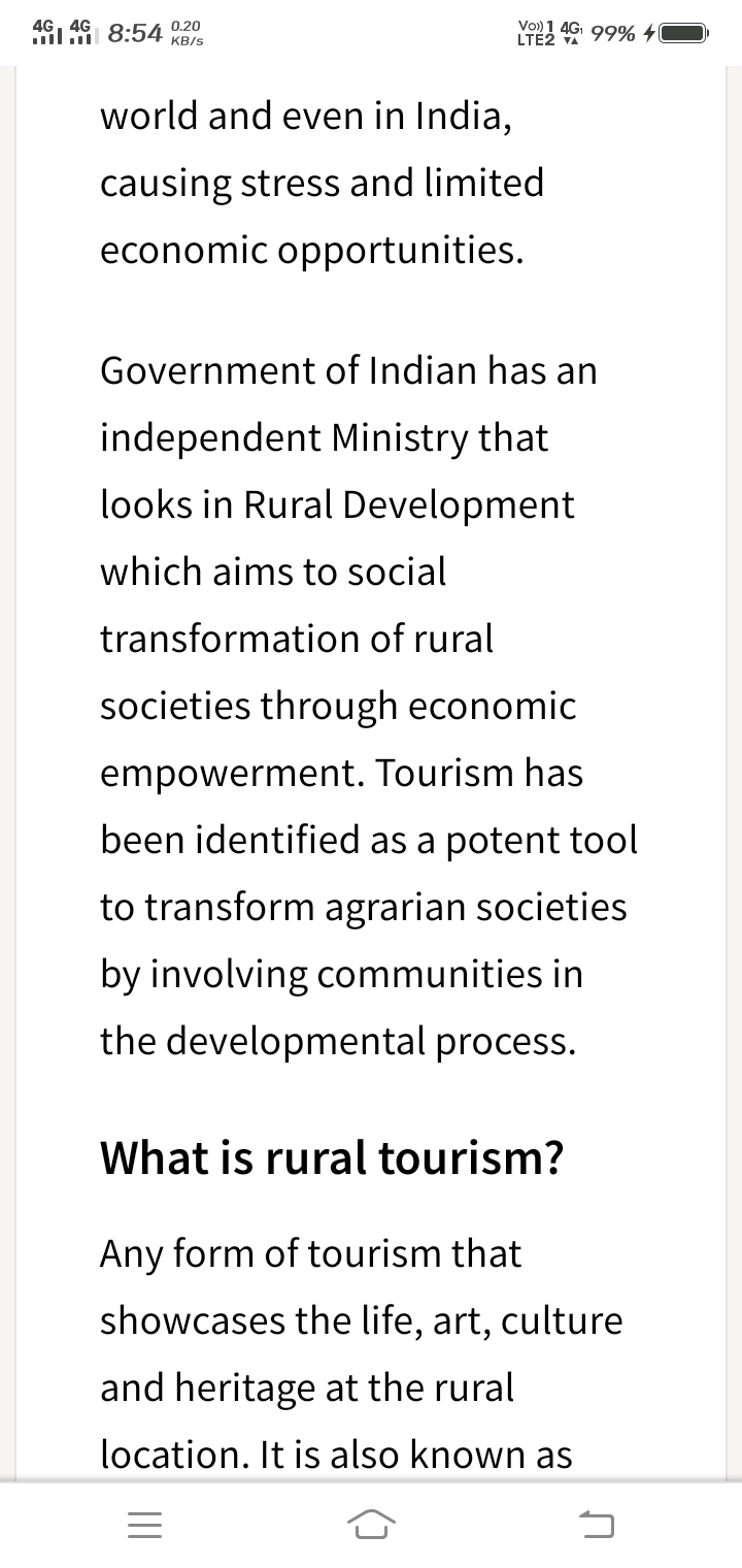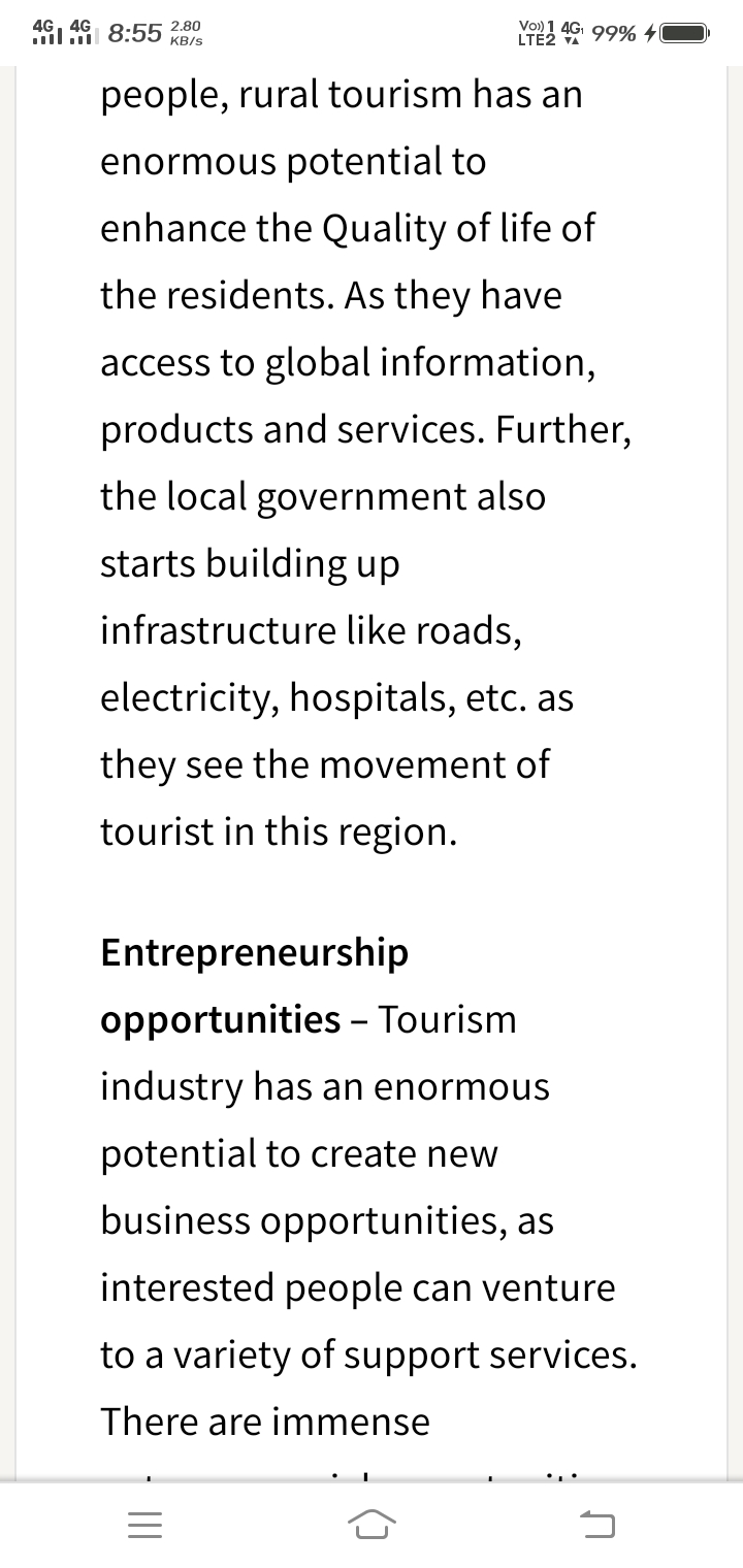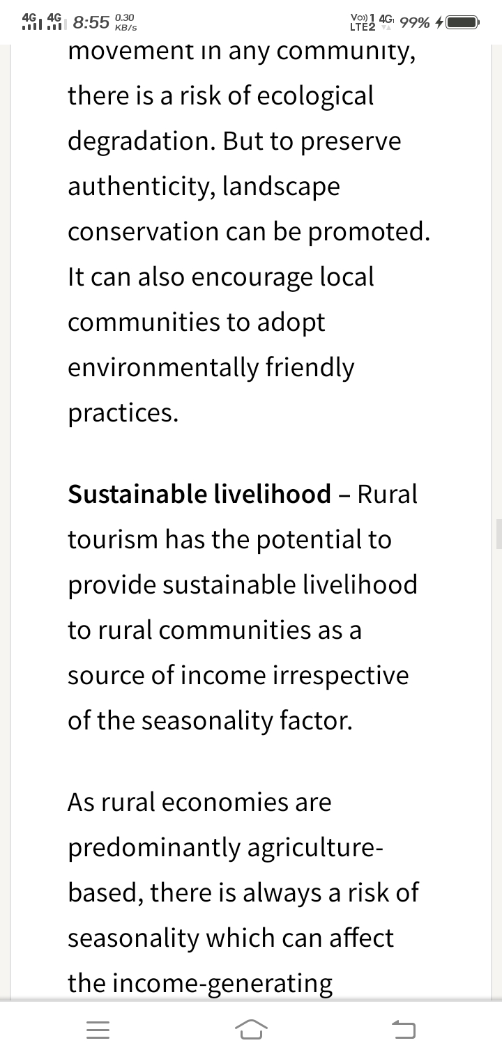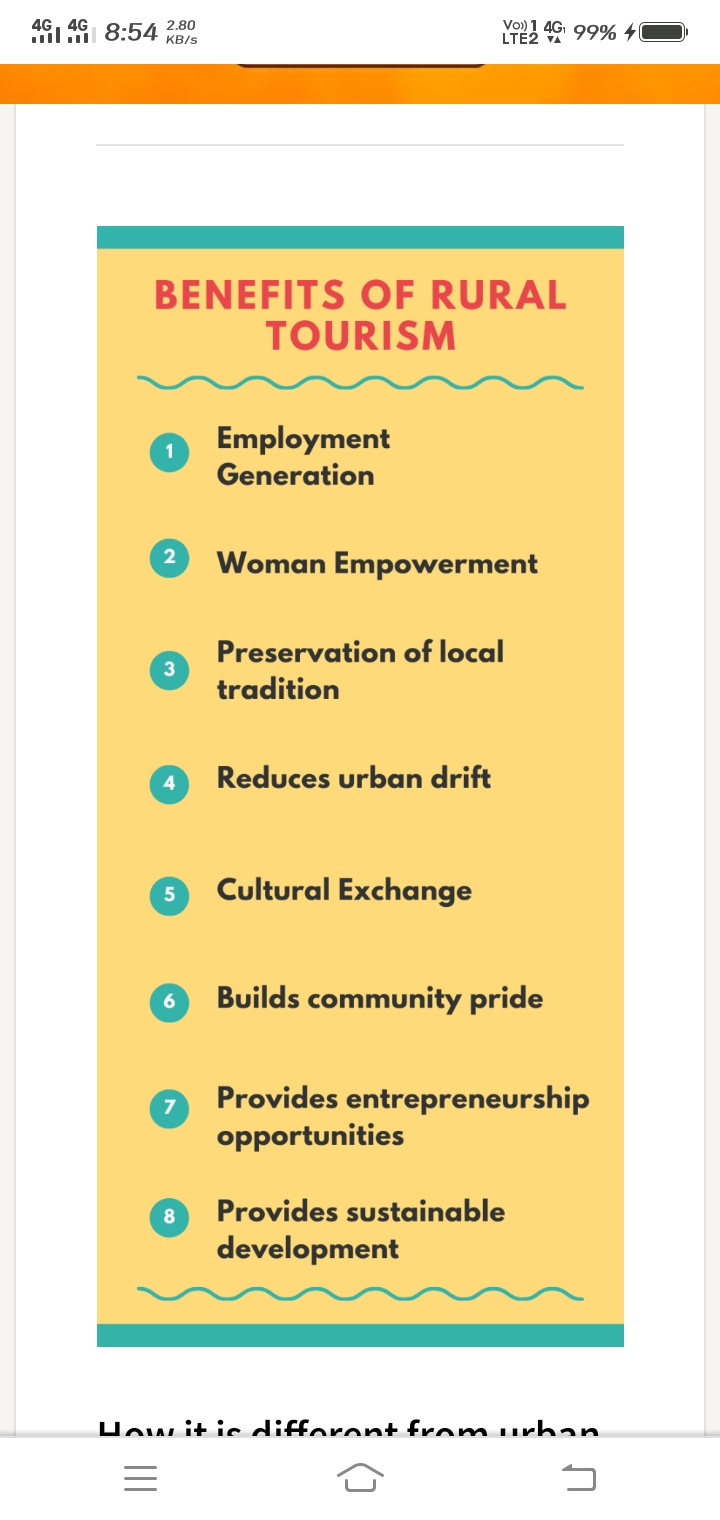 (I) Employment generation – The major advantage of promoting rural tourism is the creation of employment opportunities, especially for those who do not have agricultural land to meet their economic needs.