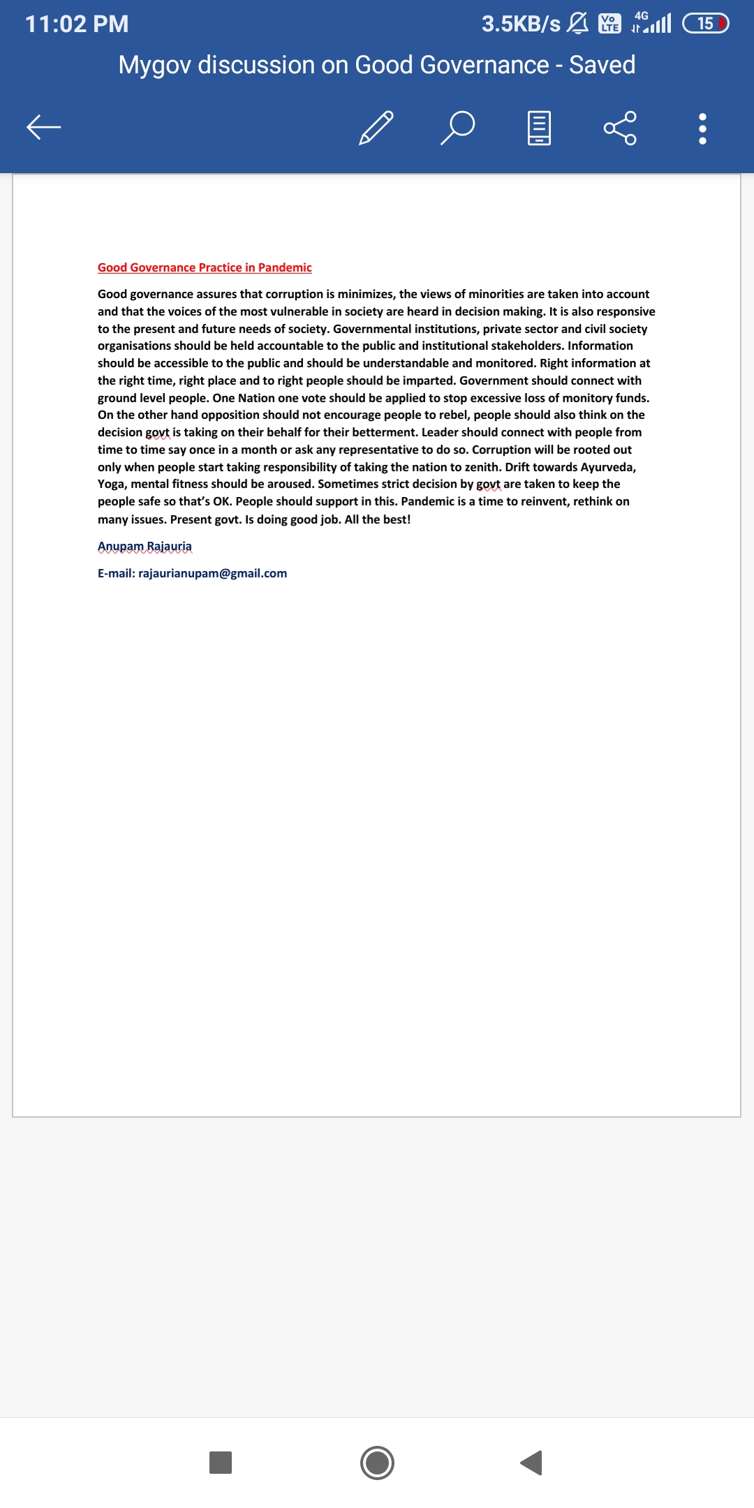 Good governance is collection efforts of leaders as well as people of the nation. Responsibility of taking the nation to the zenith is not only of government but also of the people of the nation. Rights come with duties, everybody should understand this.