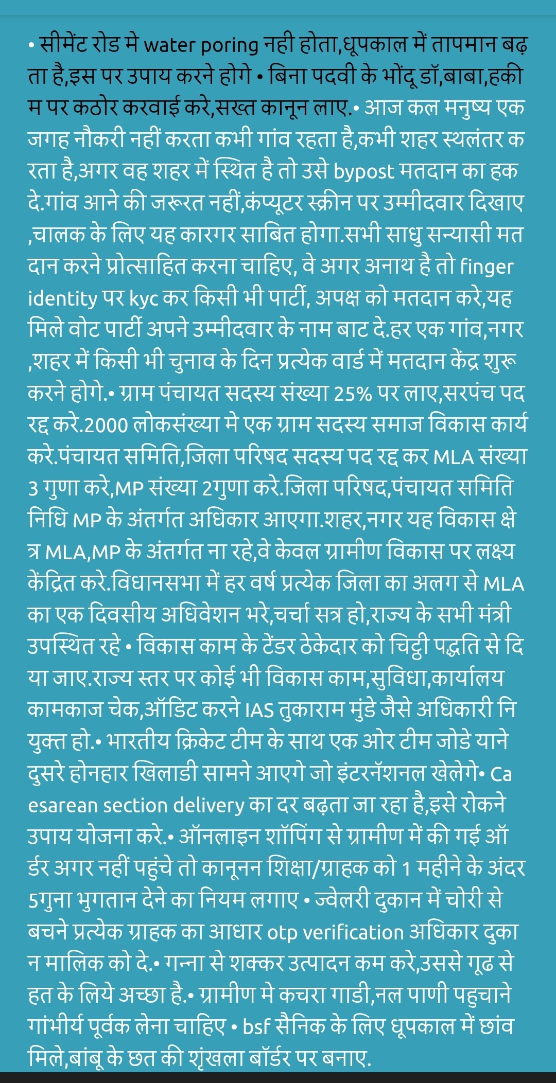 We need more accountability in the government, there is corruption happening left right center in all forms and arms of the government, even the judiciary is severly affected by such issues. If the government can pass a bill where even officers, judges and netas can be punishable by law against corruption, India will immediately jump 10 years in terms of development.