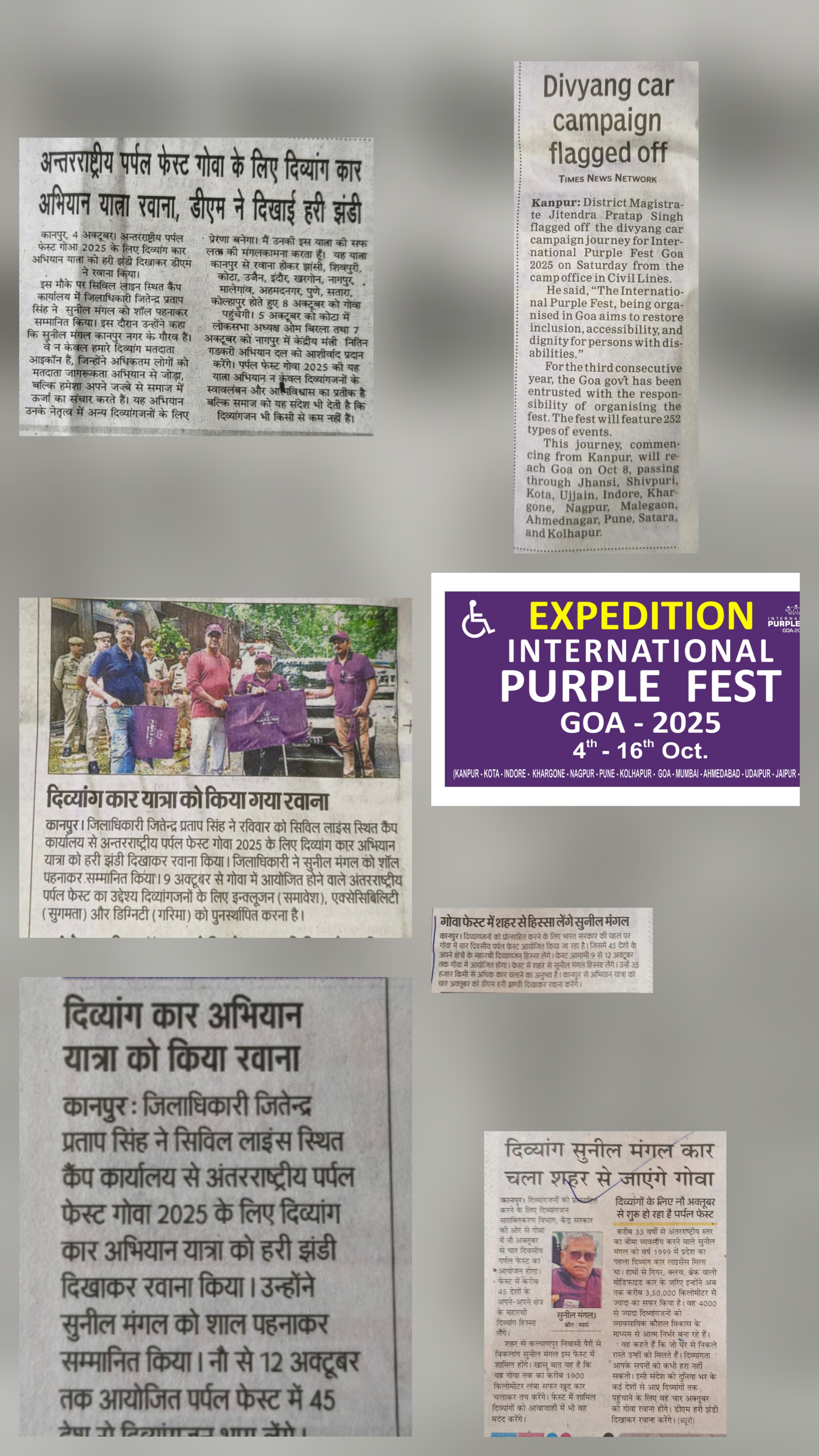 Namaskar PM Sir, Recently Goa had organized International Purple Fest GOA 2025 for overall inclusivity of divyangjan, having locomotive disability travelled Kanpur to GOA in my adapted car (hand driven car for divyangjan) – the Purple Lover Expedition for divyangjan, the purpose of this expedition (1) self identity to society inclusion (2) ODOP scheme boon for PWDs employability (3) connecting PWDs with sports activities- the biggest source of harmony (4) Accessibility at all levels/barrier free infrastructure. Expedition started with DM Kanpur Sir on 4th Oct. and reached Goa on 8th Oct. 2025, covering 2307 km one way distance-connecting 12 cities of 5 states 2500+ divyangjans enroute. Participated International Purple Fest Goa 2025 from 9th to 12th Oct. 2025 for all special abilities of divyangjans at international level. Returned back via Mumbai, Nasik, Indore, Jhansi total distance covered 4700 km in our adapted car. Your honour Sir this is shared as motivation to all.