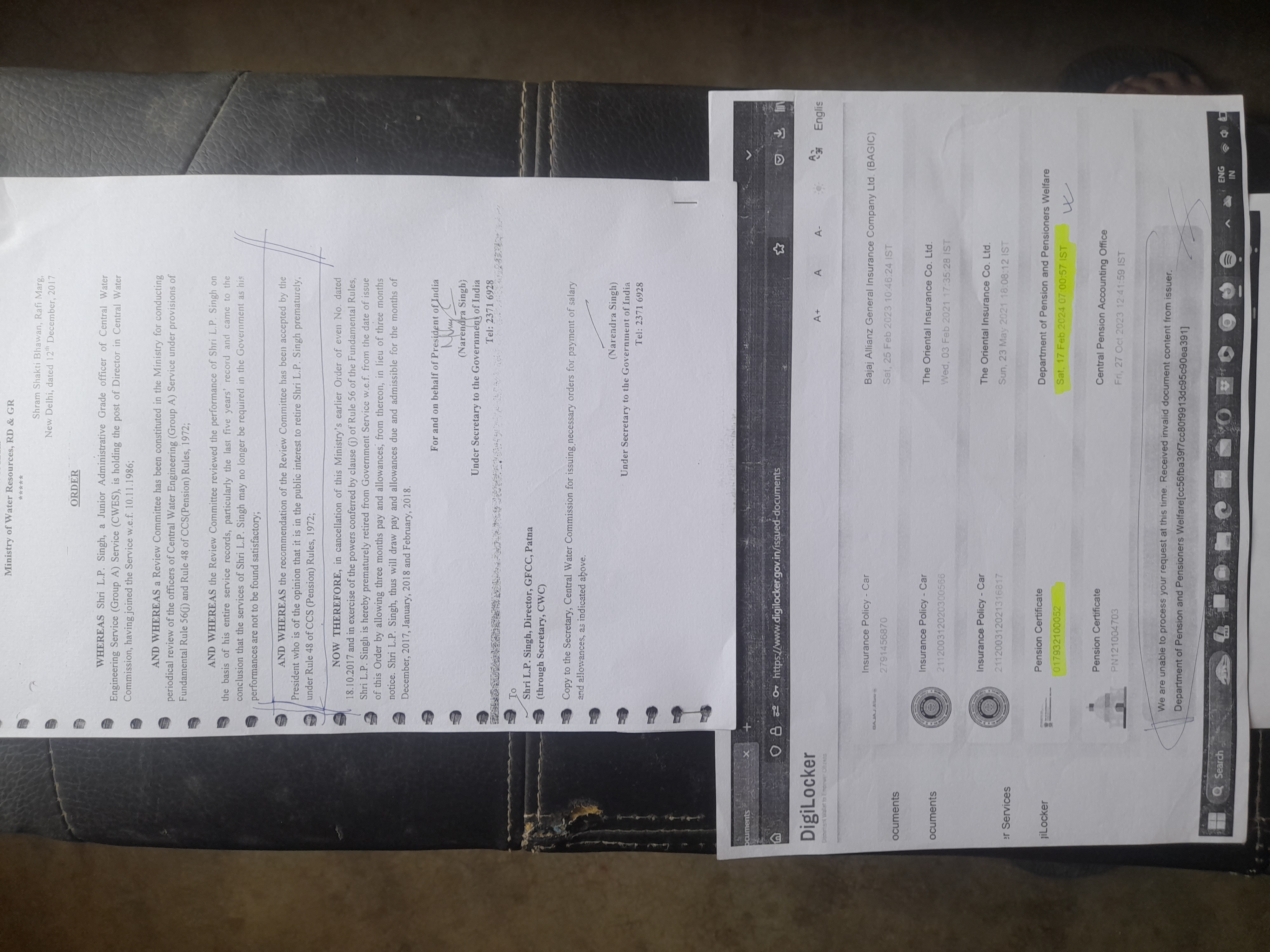 Sir I request redress of 3049 grievances registered during 08-09-2020 to 09-02-2024 on PMOPG Portal for cancellation of DoWRRDGR, GoI premature retirement order dated 12.12.2017 under Rule 48 of CCS Pension Rules, 1972 with invalid PPO 017932100052 having no payment against the said PPO 017932100052 in digitally signed Form 16 even for the last FY 2023-2024 in light of DoPT OM dated 27.06.2024
