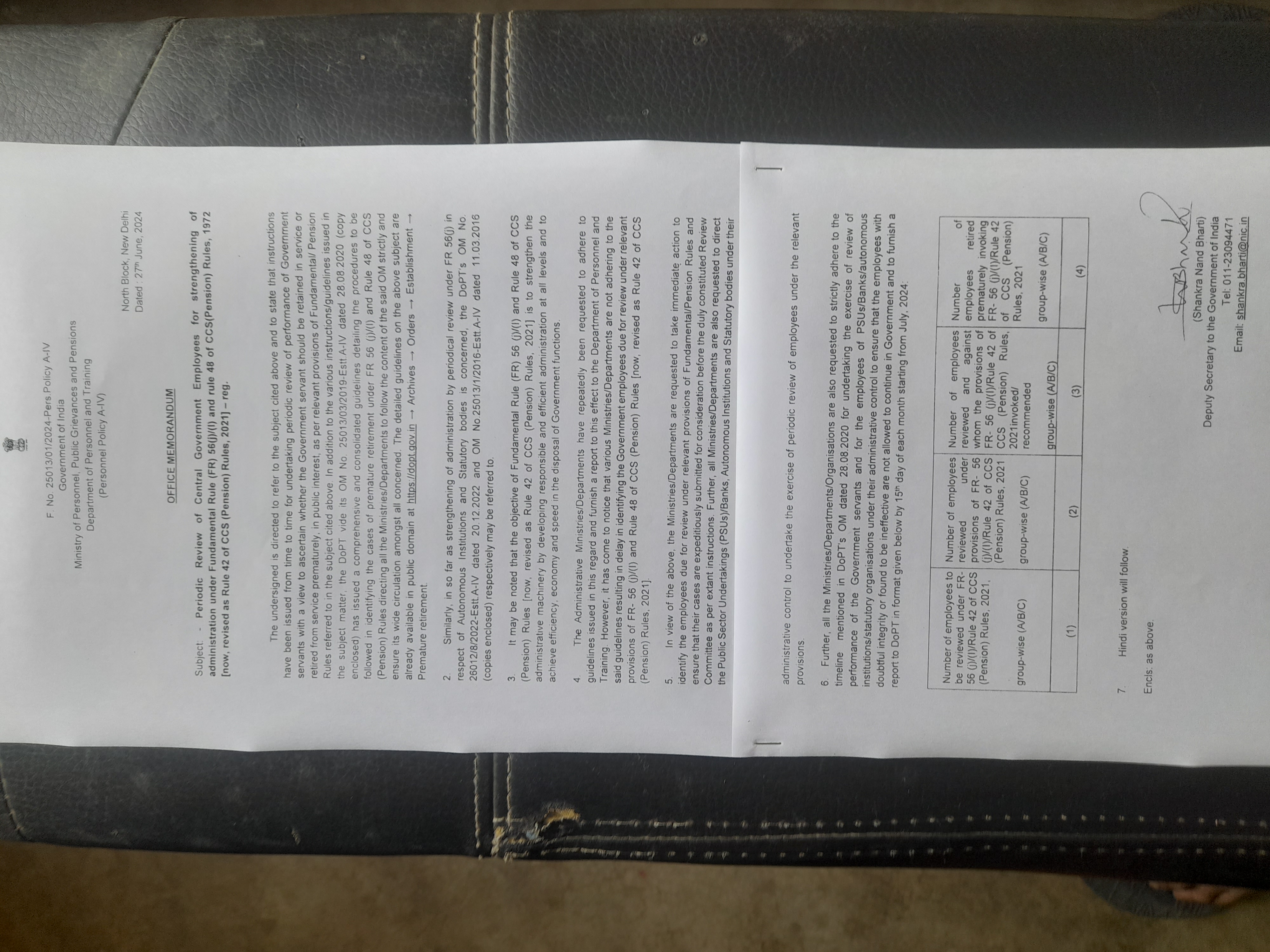 - Department of Administrative Reforms and Public Grievances