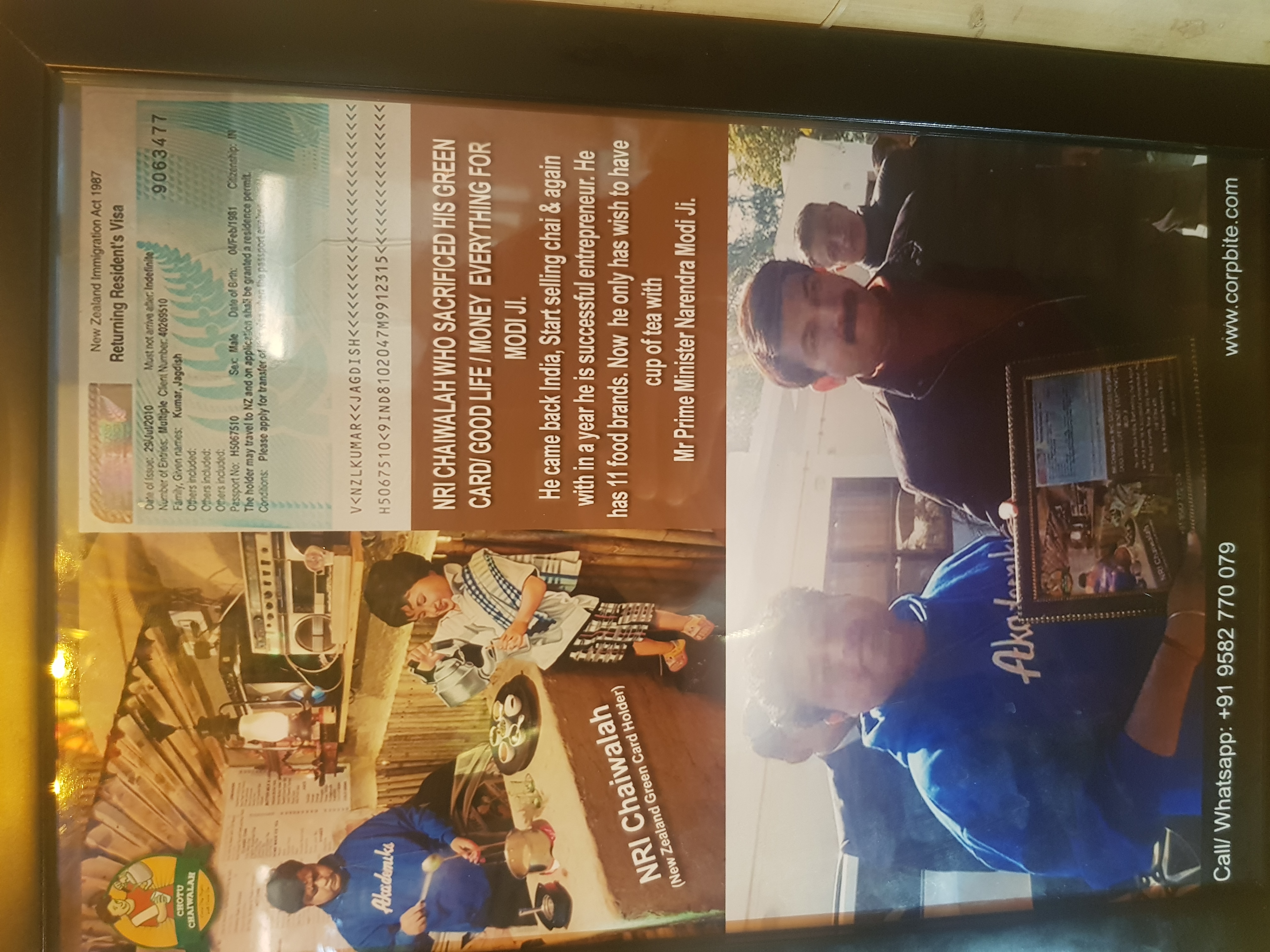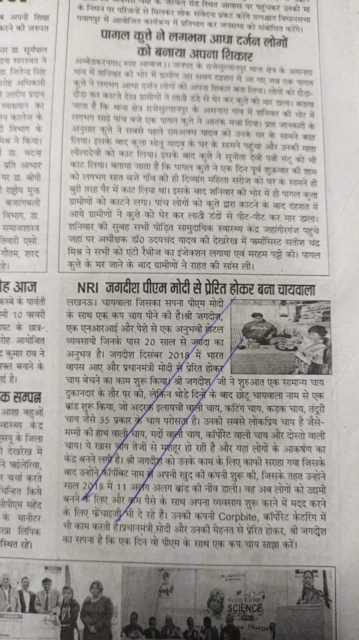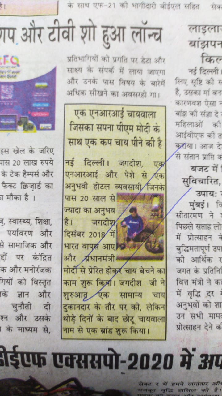 Sir i am nri chaiwalah, i left everything behind and came back india for start up india. I have attached my all media print, my achievements.