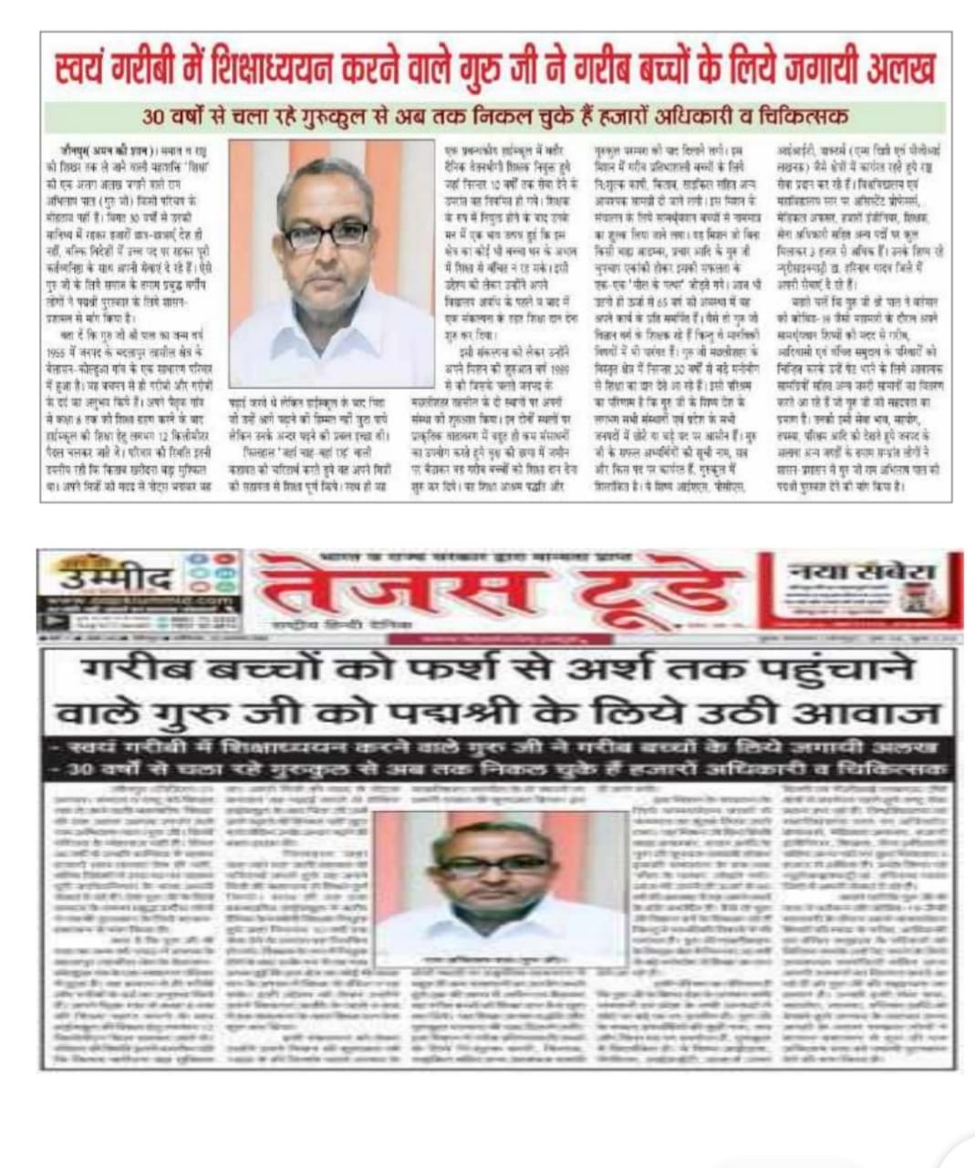 He has been teaching as gurukul system for 30 years and charge minimum fee & also give free education and help to poor students.