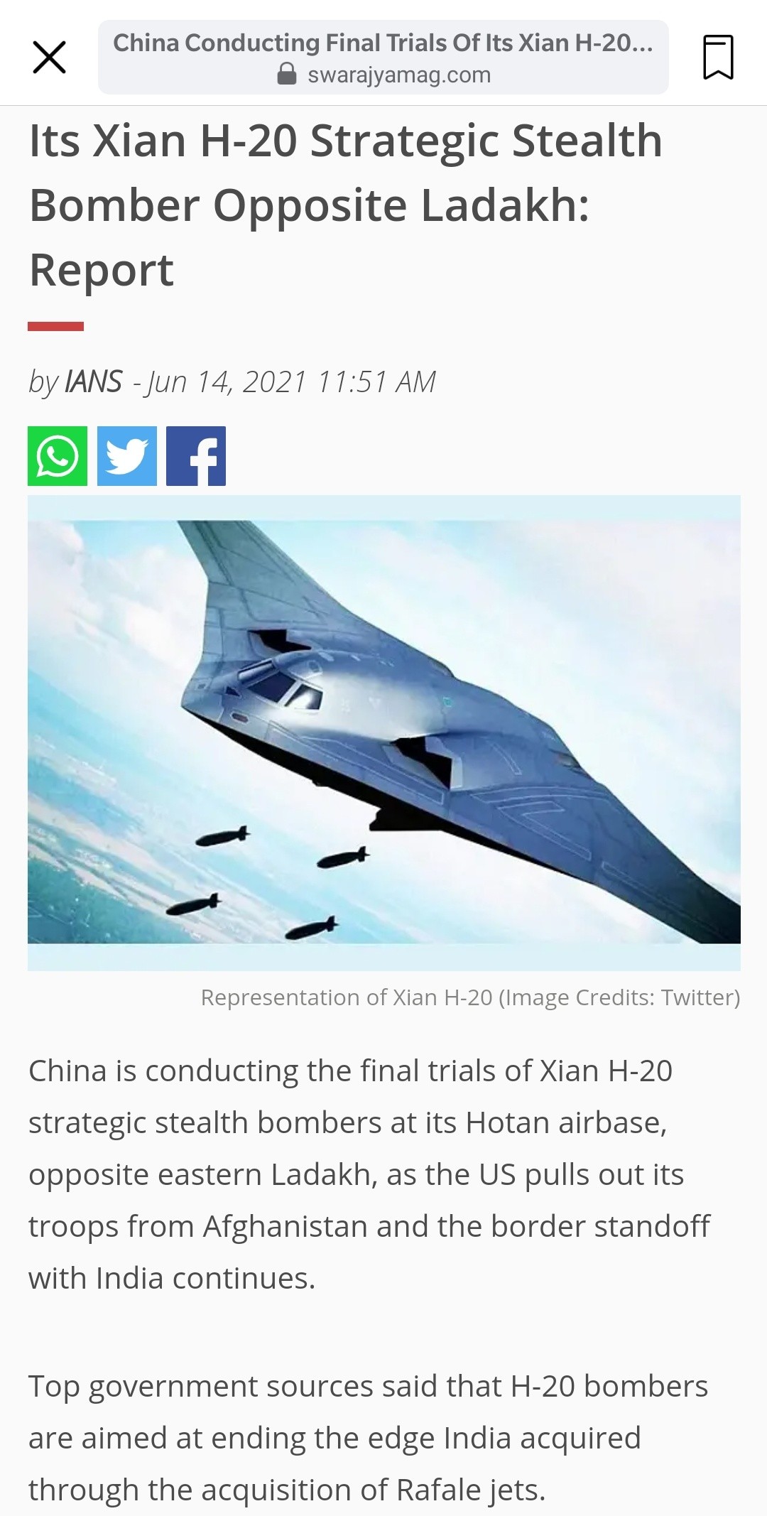 The H-20 which is under final trial opposite to Ladakh which ranges about 5700kms with capacity to carry 10 tons. Our ranges are around 3500 max, we need to see for our own developments rather than buying from outside. https://swarajyamag.com/news-brief/china-conducting-final-trials-of-its-xian-h-20-strategic-stealth-bomber-opposite-ladakh-report