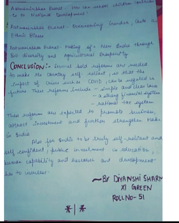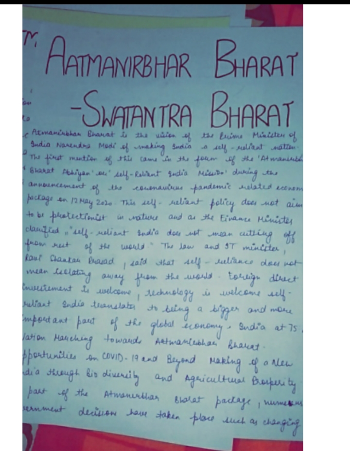 Theme --- Atmanirbhar Bharat - Swatantra Bharat or Self - Reliant Nation