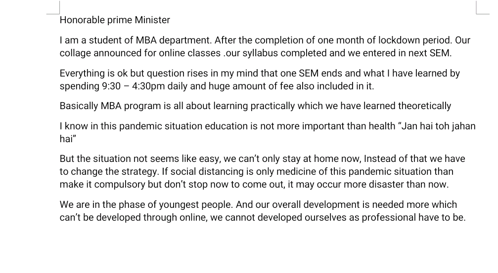 Pranaam PM Narendra Modi Ji! You are my favorite PM of all times. I want to give a small suggestion. From 22-03-2020, Lock down was imposed in whole country successfully and CORONA Spread was successfully stopped. But from Unlock 1.0 spread became very heavy. I kindly request you to again impose lock down for 2 weeks by giving vide publicity 3 days before so that people settled in other places will given chance to return to their home town.