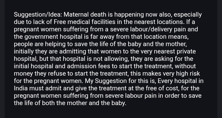 Dear PM Modi sir, Eventhough there is a possibility of Normal delivery for the pregnant women, Many private hospitals are doing cesarean for the sake of money. Please find the attachment. Already, I had submitted this idea to the PMO and Maternal Health Department for the consideration. This suggestion will help many poor people. Sir, I wish to meet you. Jai Hind