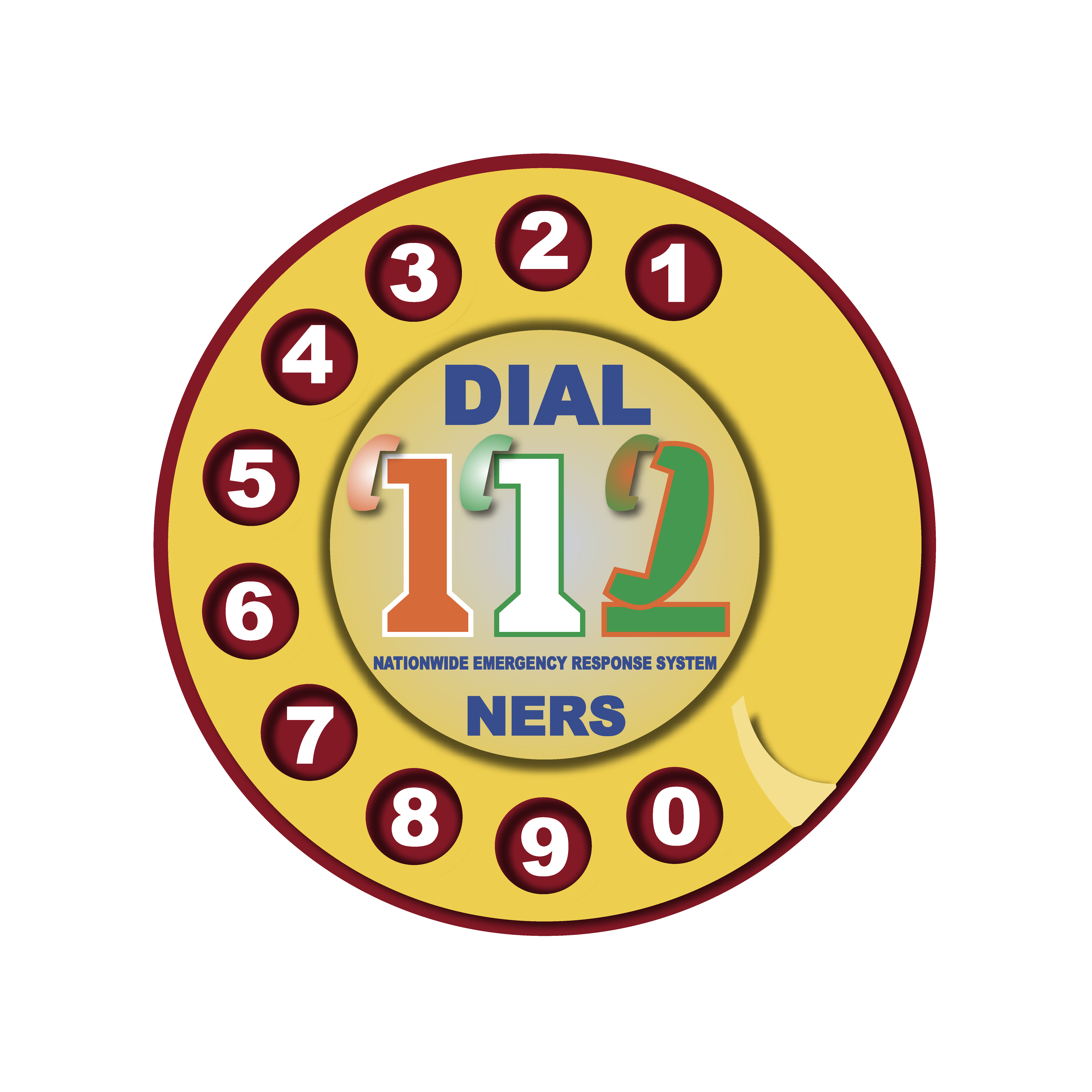 Slightly modified than previous A traditional Rotary Phone Dial symbolize that the LOGO is a TELEPHONE Related. Four symbolic ‘RECEIVER’ are there. Three small RECEIVERs are showing attached with the NUMBER of ‘112’. Another is the part of Number of ‘2’ of ‘112’ means the BIGGER SYSTEM-RECEIVER. And The SYSTEM receives many EMEGENCY PHONE CALLS from many small RECEIVERs throughout the Country. Tricolor used in the ‘112’ Graphics and other colors are used for better combination.