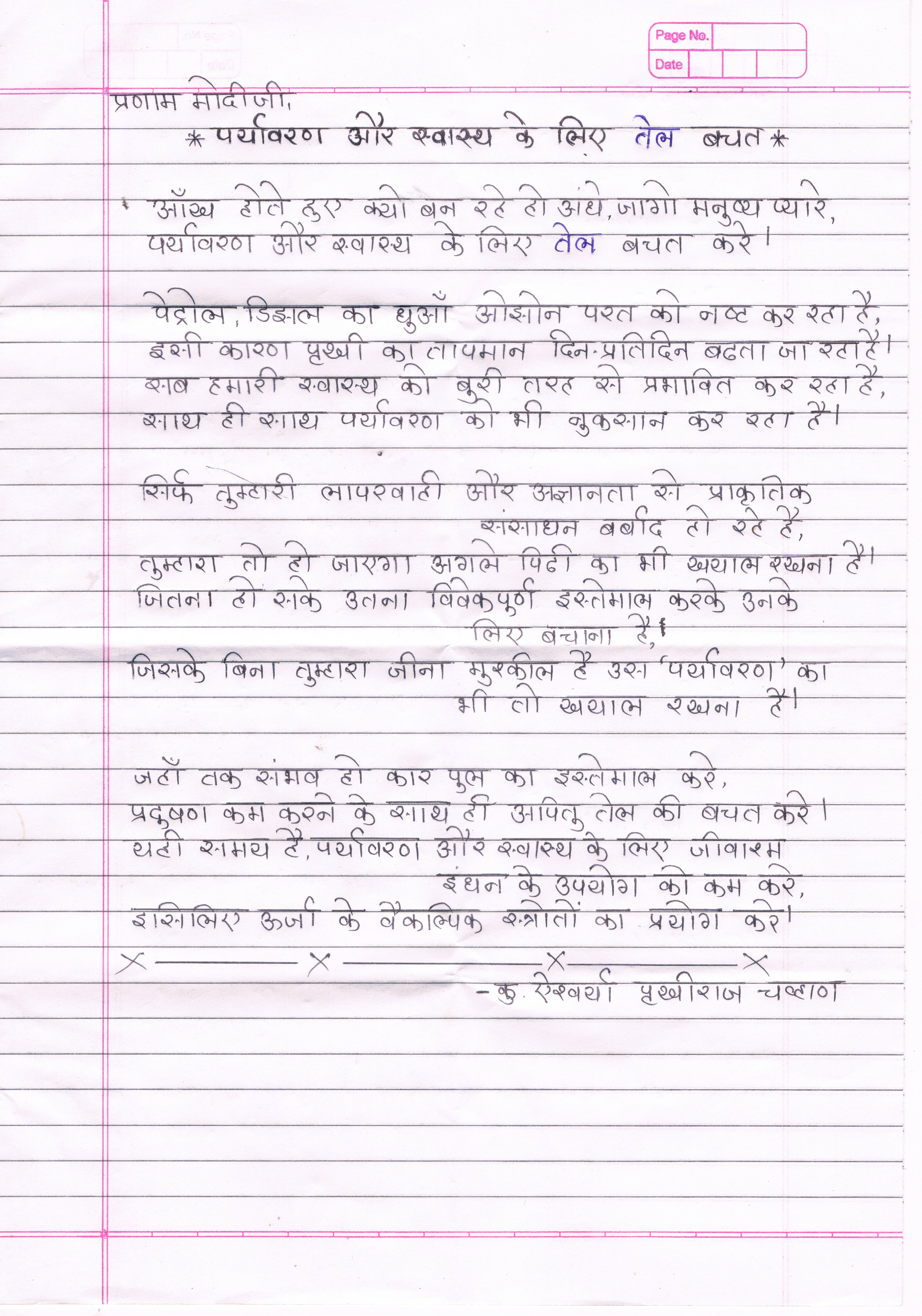 बेहतर पर्यावरण और स्वास्थ्य के लिए तेल बचत