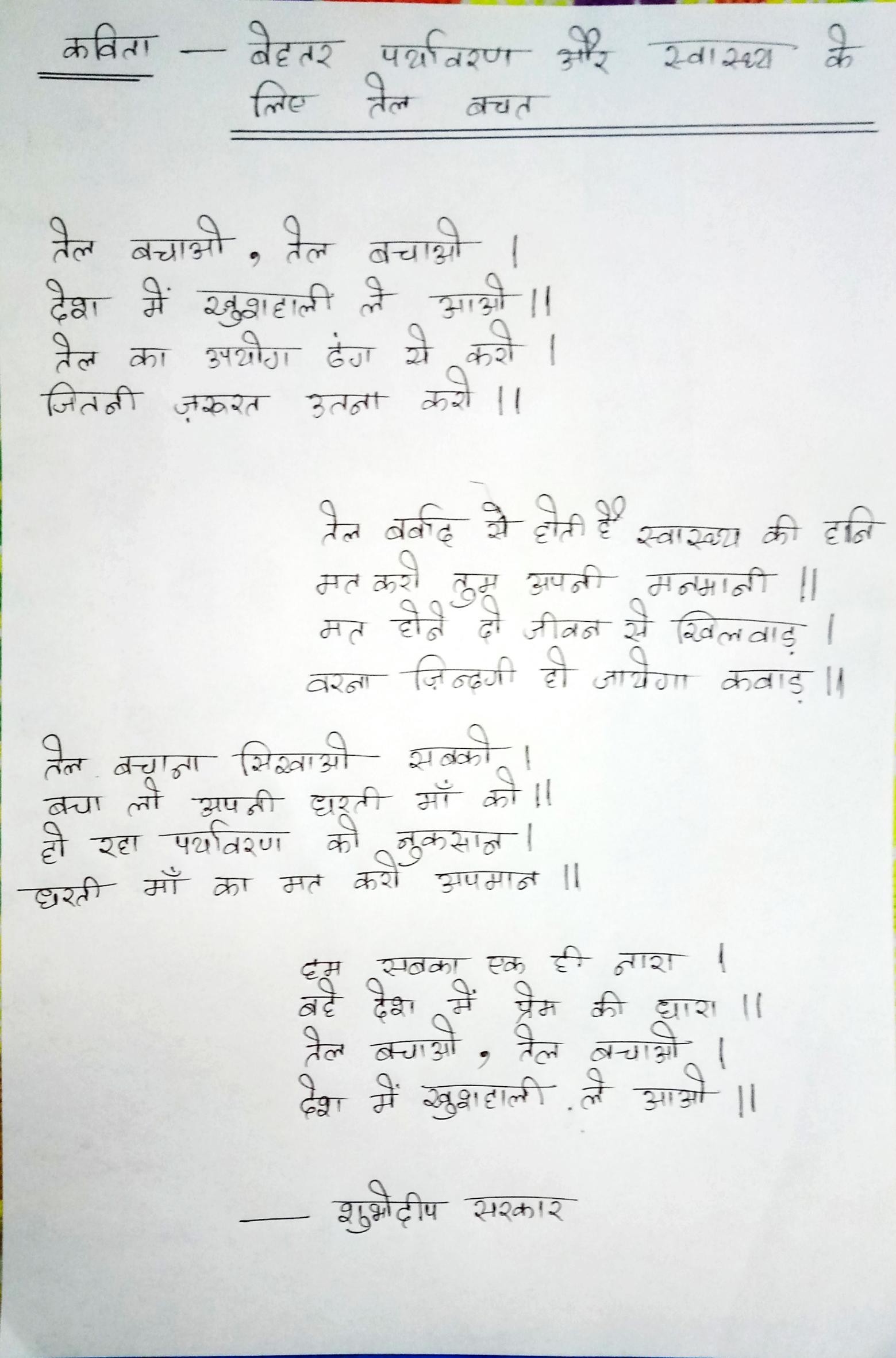 बेहतर पर्यावरण और स्वास्थ्य के लिए तेल बचत