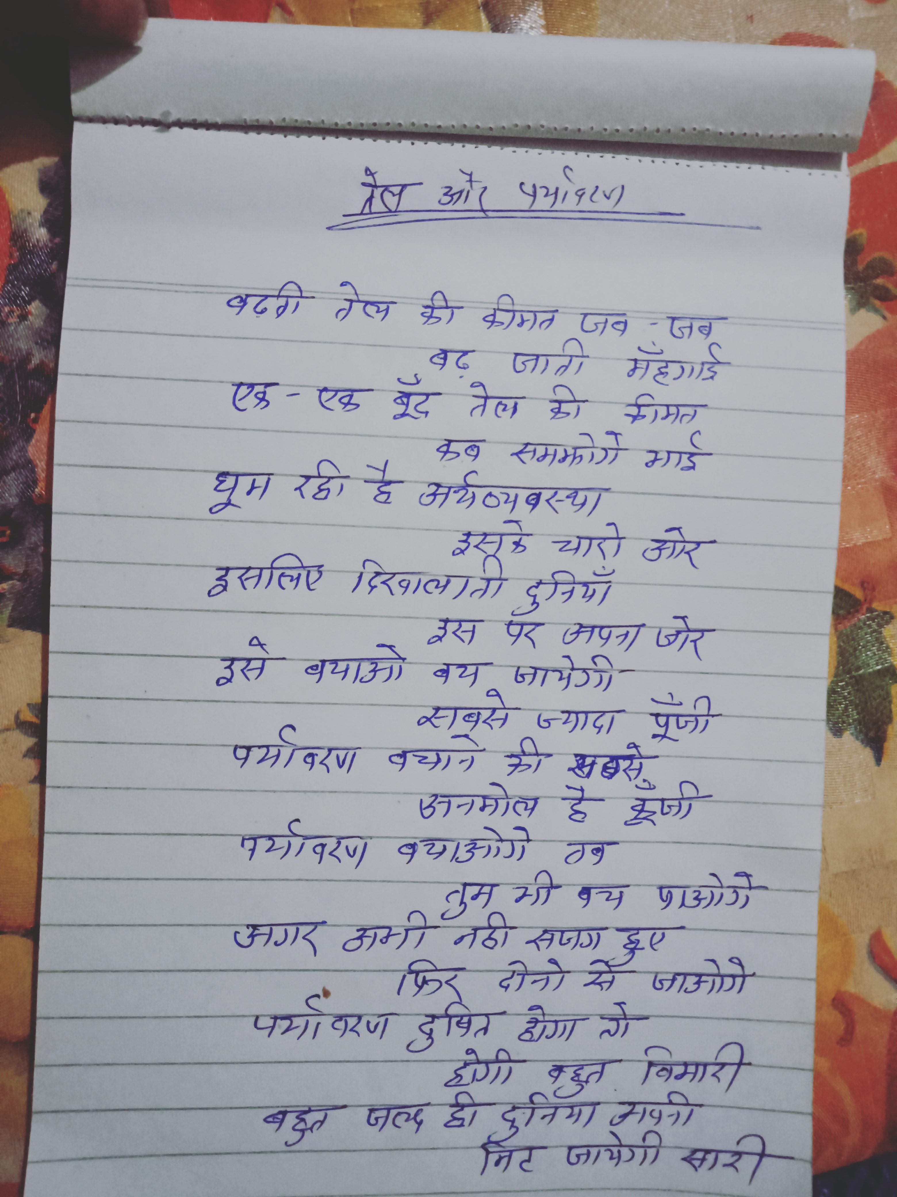 नव भारत का निर्माण करना है धीरे धीरे तेल को बचाना है तेल की खपत कम करना है धीरे धीरे तेल को बचाना है प्रदूषण को नियंत्रण मे लाना है पर्यावरण को अच्छा बनाना है धीरे धीरे तेल को बचाना है वायु ऊर्जा एवं सौर ऊर्जा को बढावा देना है प्रदूषण को नियंत्रण मे लाना है पर्यावरण को हरा भरा बनाना है धीरे धीरे तेल को बचाना है विद्युत वाहनों का उपयोग बढाना है तेल की खपत मे कमी करना है प्रदूषण को नियंत्रण मे लाना है पर्यावरण को संजोए रखना है धीरे धीरे तेल को बचाना है नवभारत का निर्माण करना है