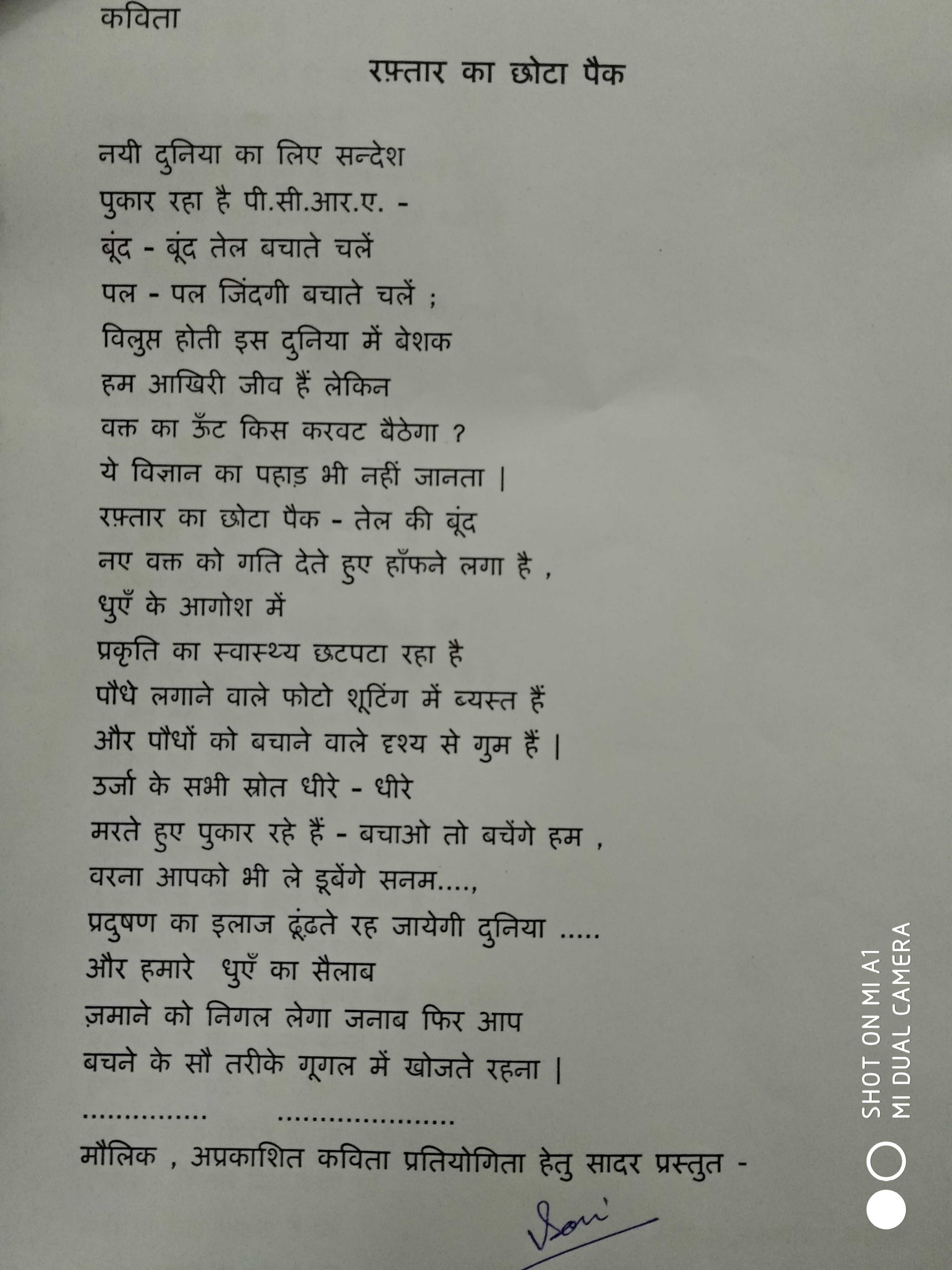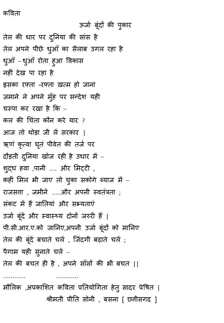 Petroleum Conservation Research Association (PCRA), under the aegis of Ministry of Petroleum & Natural Gas, Govt. of India, is committed to make oil conservation a National Movement. As a part of its mandate, Poem/Song Contest is being conducted.