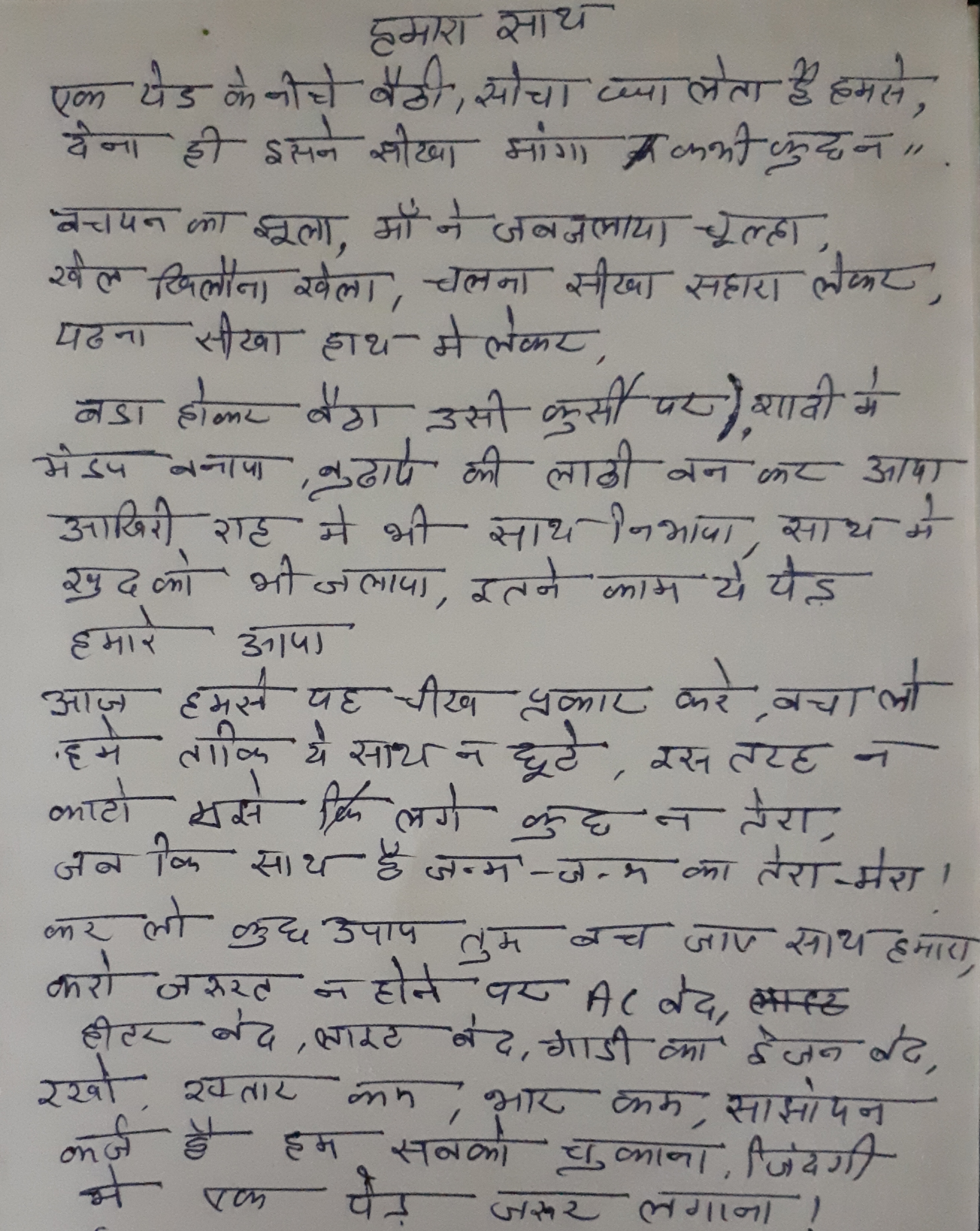 Kyo na aj hi ek kadam uthayen aap aao nai rit chalayen naye pedhon ko lagayen apni dharti ko hara bhara kar and valaPidhionKiZingionKoBachaye