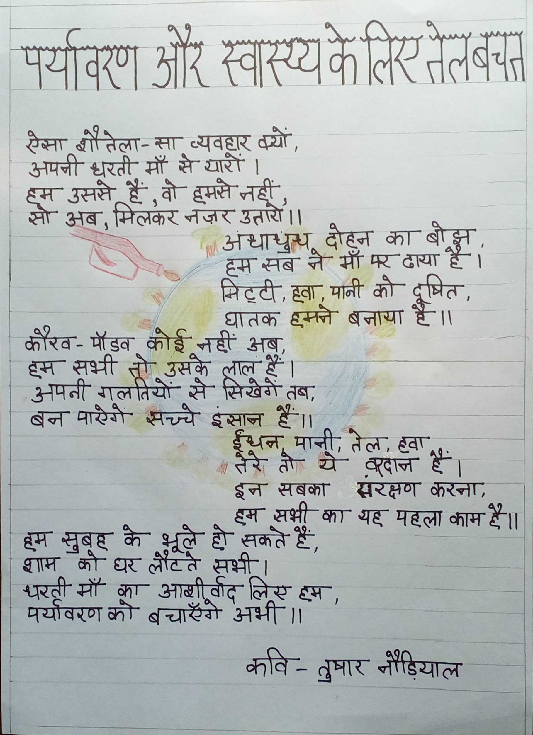 I am submitting a poem ( under category 3--open for general public )on the subject बेहतर पर्यावरण और स्वास्थ्य के लिए तेल बचत. Kindly accept.