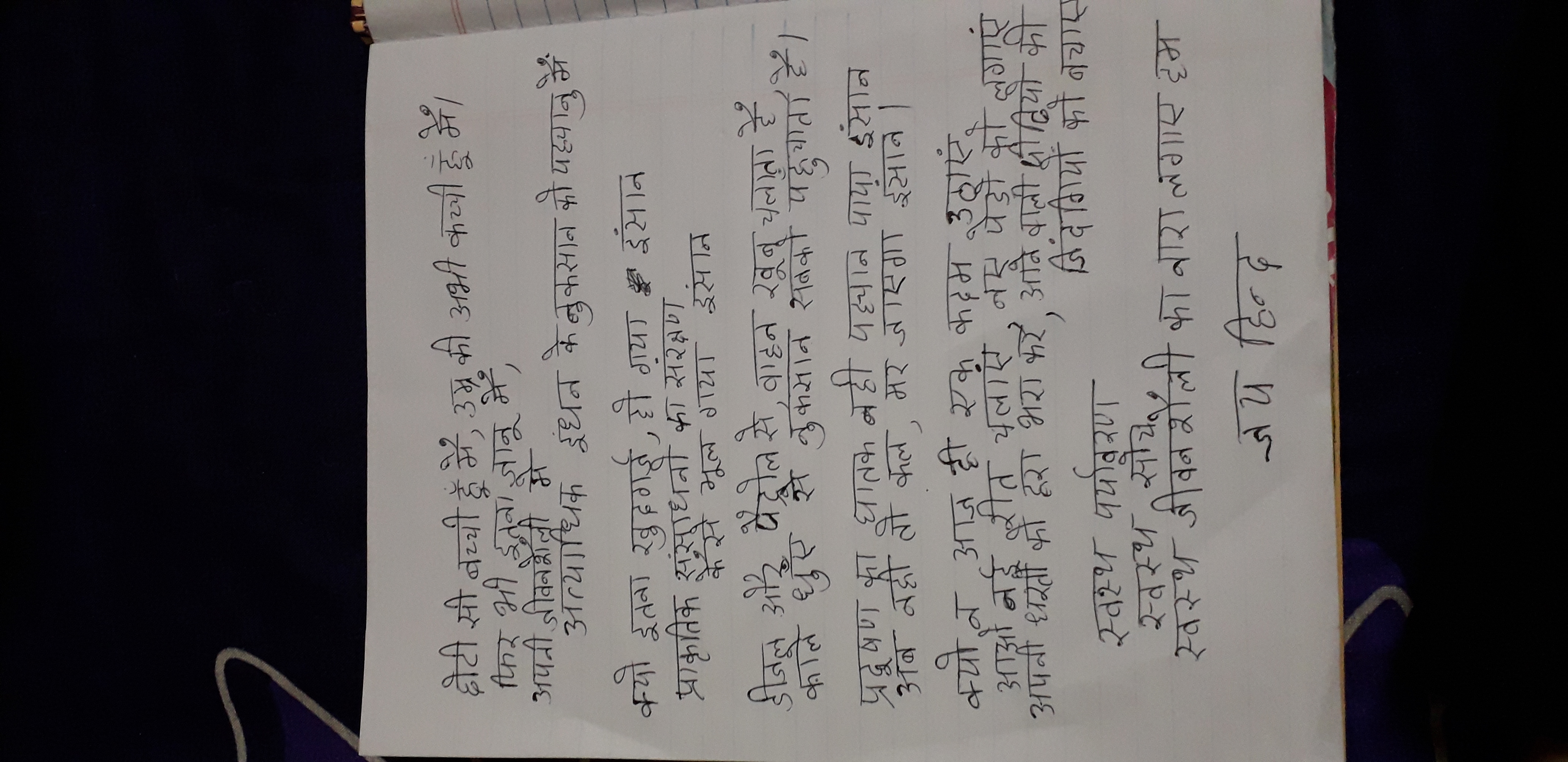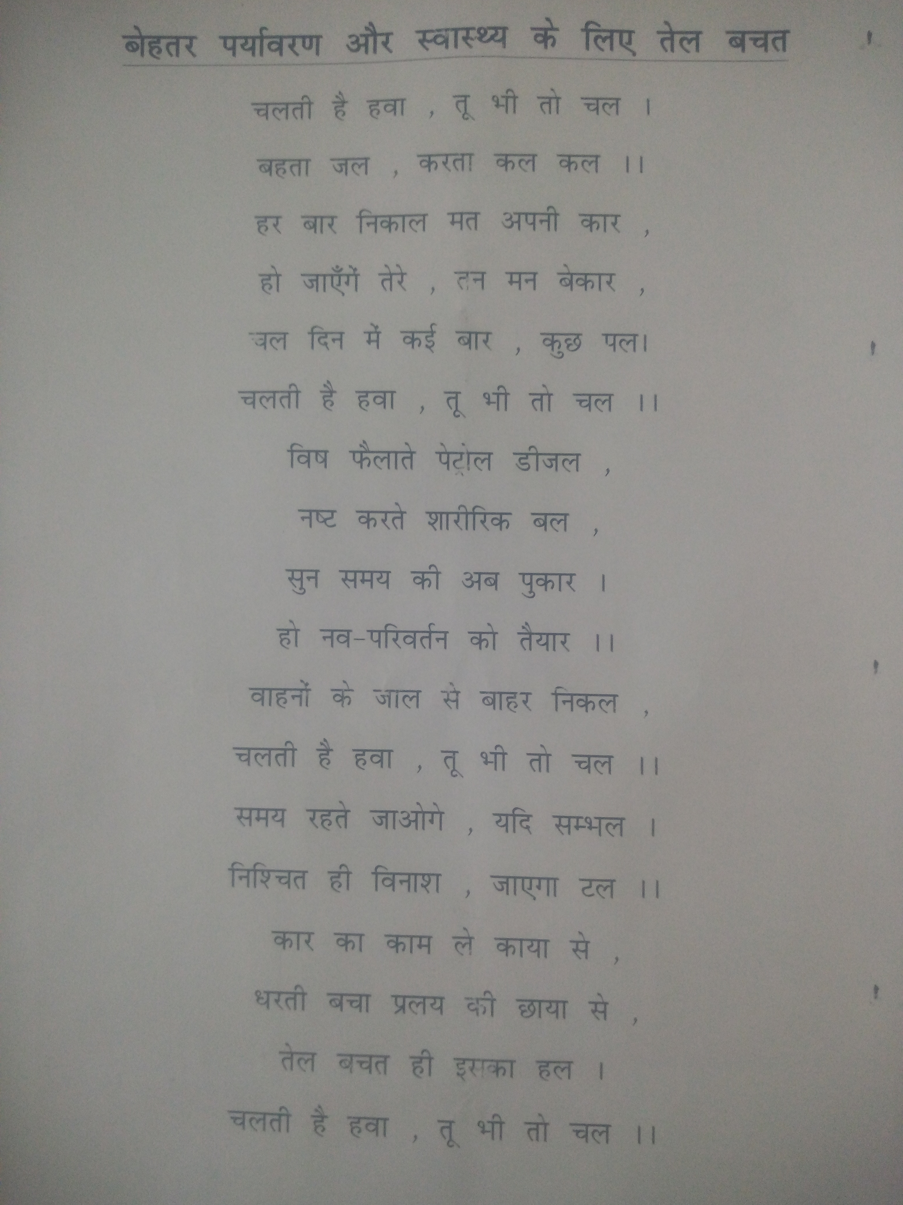 Chhoti si bachhi hu mai umr ki Abhi kachi hu mai fir bhi itna janu mai apni jivanchhaili me atyadhik indhan ke nuksan ko pehchanu mai