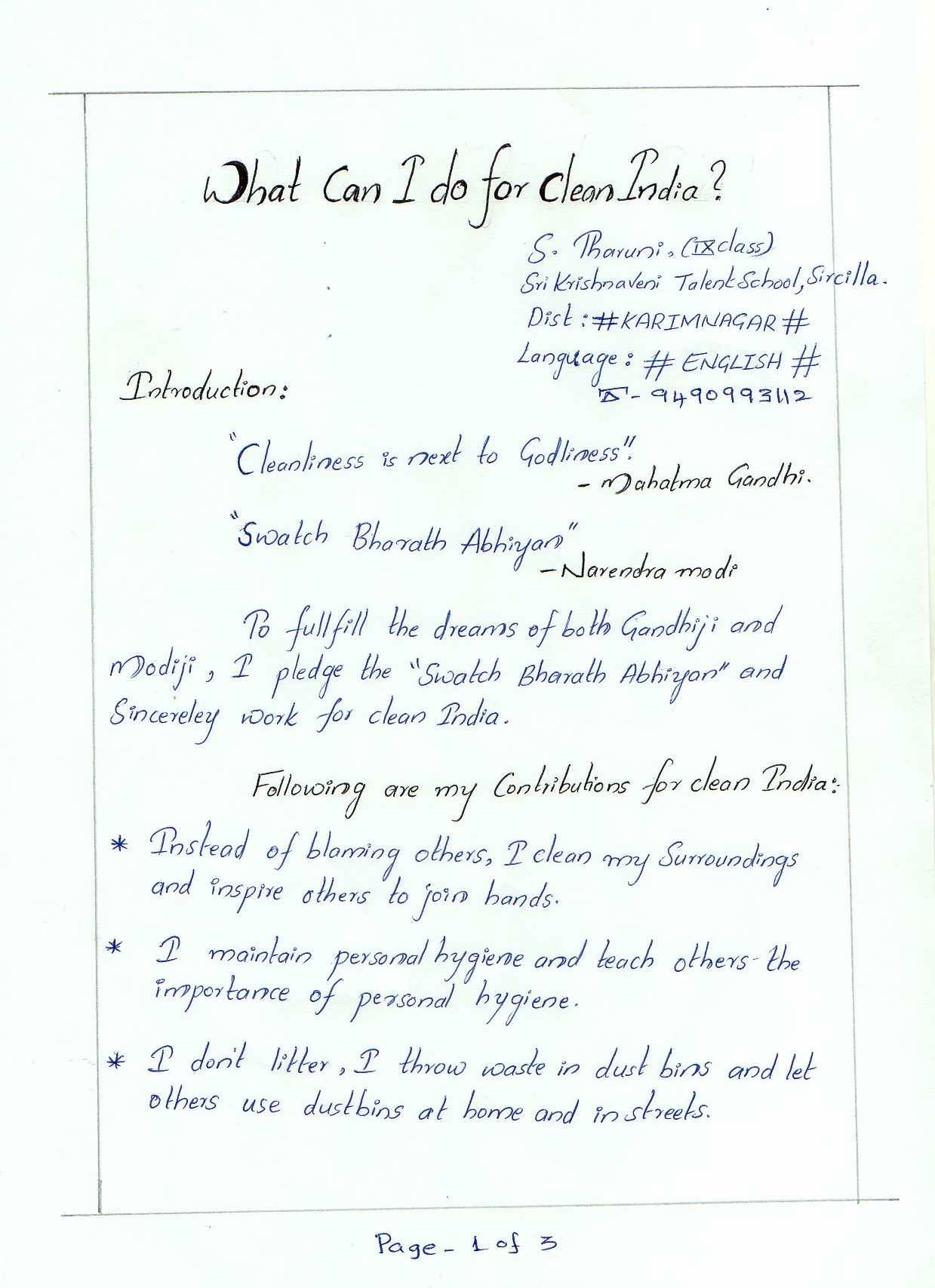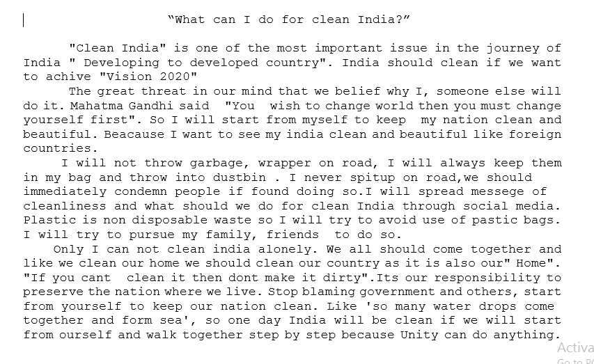 What can I do for clean India? I am attaching my essay on the above noted subject for your review. Kindly see the attached file.