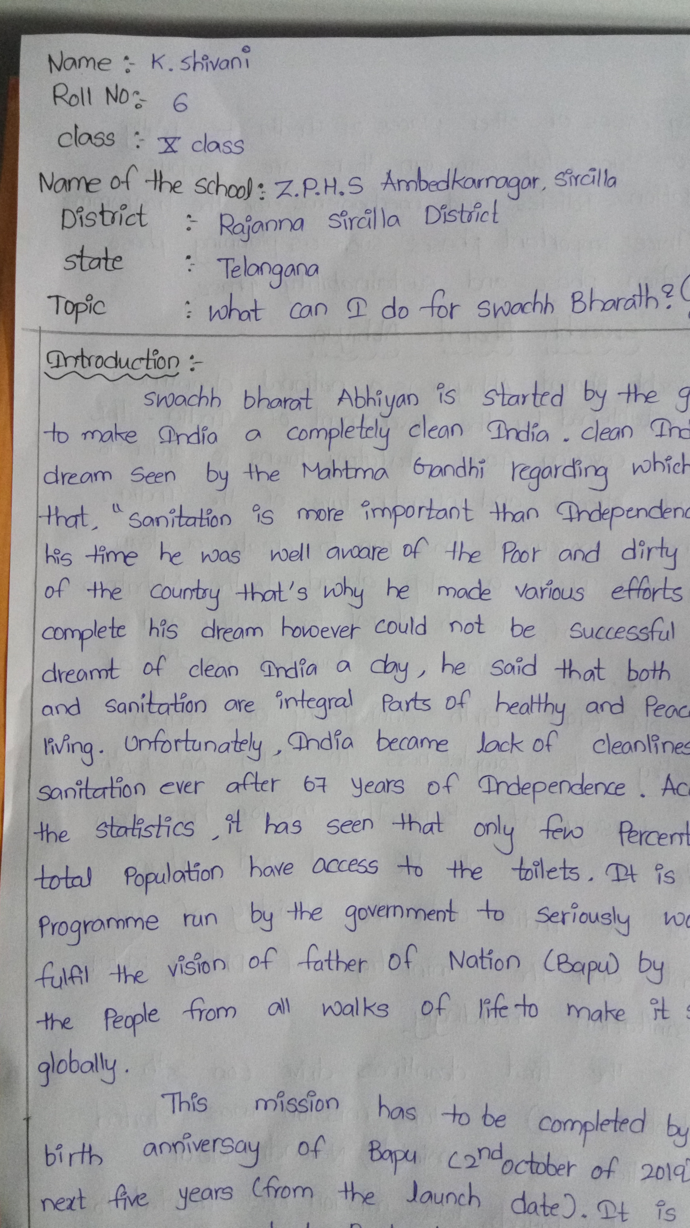 K SHIVANI ZPHS AMBEDKARNAGAR SIRICILLA DIST: RAJANNA SIRICILLA TELANGANA 505301